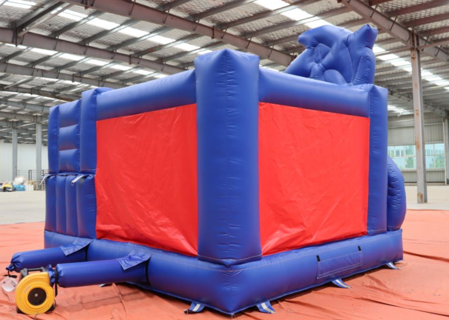 Einfach zu benutzen und zu transportieren: Diese Hüpfburg lässt sich in nur zwei Minuten auf- und abblasen. Geeignet für Kinder im Alter von 4-10 Jahren. Kann mind. 8 Kinder gleichzeitig aufnehmen.
